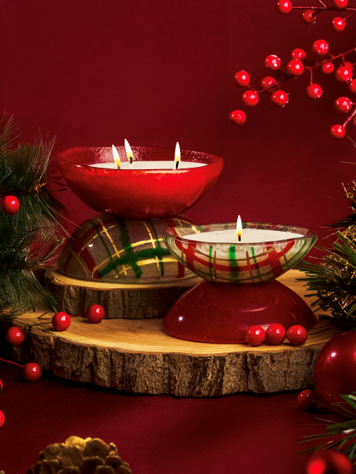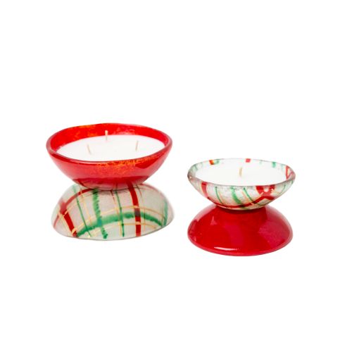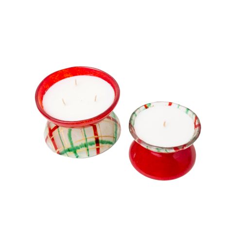 We proudly present our first time collaboration with Walid Onsy. Recognised for creating artistic and functional fused glass art, we collaborated to bring you an exclusive, one of a kind collection to cherish for the holidays. A festive pattern of gold, red and green Christmas Plaid, these whimsical bowls are not only filled with our popular caramalized vanilla scent, but they are also reuseable. Once you have enjoyed the scent of the candle, you can repurpose the bowls as they can be filled with cholcolate treats, dips, guest soap, jewelry…whatever you like! And the bowls are reversable! Each piece is unique in its own right, making them extra special as no two pieces are alike. Small: 9cm D x 8cm H Large: 12cm D x 10cm H