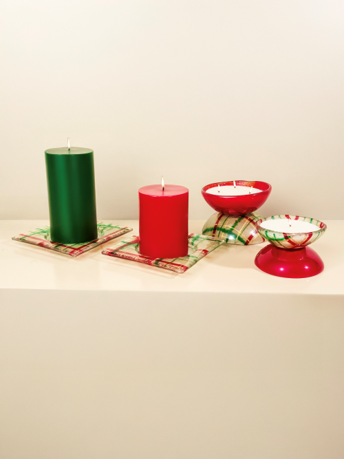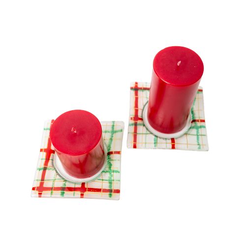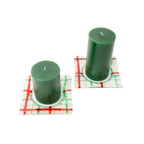 We proudly present our first time in collaboration with Walid Onsy. Recognised for creating artistic, decorative and functional hand painted fused glass, we collaborated to bring you an exclusive, one of a kind collection to cherish for the holidays. Our Christmas Plaid candle coasters measure 14x14x14cm with your choice of a 7.5×10 cm candle or 7.5×15 cm candle. Place them individually or together as a set… you can also mix several together to create a stunning decoration as a centerpiece for your dining table and coffee table.