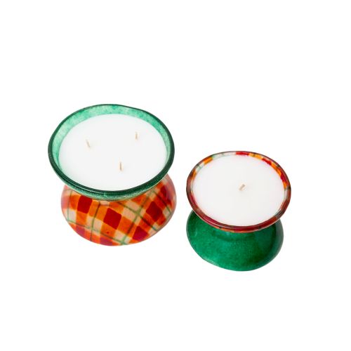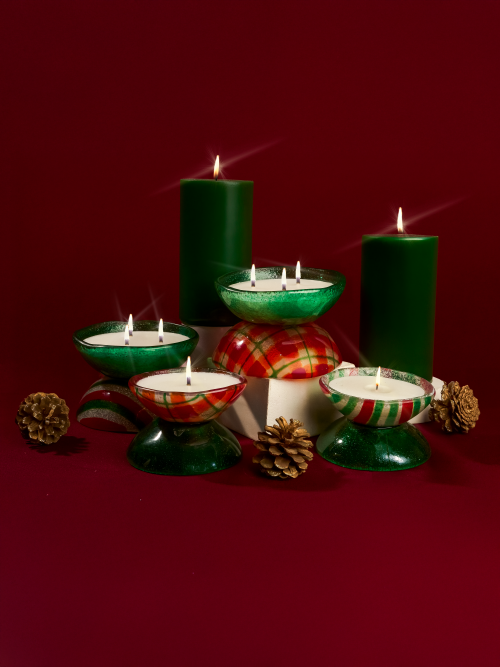 We proudly present our first time collaboration with Walid Onsy. Recognised for creating artistic and functional fused glass art, we collaborated to bring you an exclusive, one of a kind collection to cherish for the holidays. Plaid green, orange and red, these whimsical bowls are not only filled with our popular caramalized vanilla scent, but they are also reuseable. Once you have enjoyed the scent of the candle, you can repurpose the bowls as they can be filled with cholcolate treats, dips, guest soap, jewelry…whatever you like! And the bowls are reversable! Each piece is unique in its own right, making them extra special as no two pieces are alike. Small: 9cm D x 8cm H Large: 12cm D x 10cm H