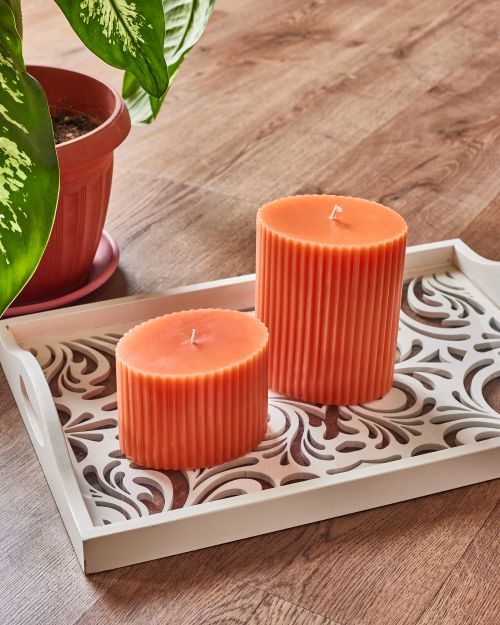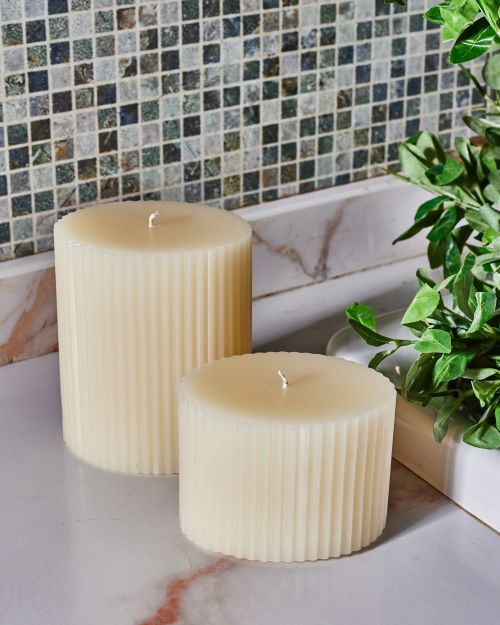 A modern twist on a classic shape. Our oval pillar candles feature a micro-corrugated texture, providing a refined aesthetic that fits perfectly in contemporary homes. The slim vertical ribbing elongates the candles profile, making it a sleek addition to your favorite decorative tray or candle holder.
